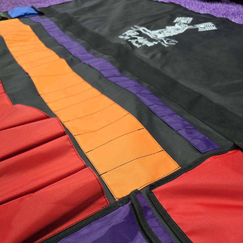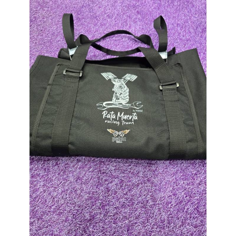 Putimanta pensada y diseรฑada a la mรกs pura esencia dakariana, nada de cajas de herramientas metรกlicas y pesadas… putimanta siempre lista para trabajar en las situaciones mรกs duras, la parte de la tapa te sirve como manta para dejar la tornillerรญa y no perderla en la fina arena dakariana, sus 4 bolsillos te permiten guardar esos gatches secretos que cada mecรกnico le gusta llevar… en fin… una putimanta al mรกs puro estilo ratamuerta.